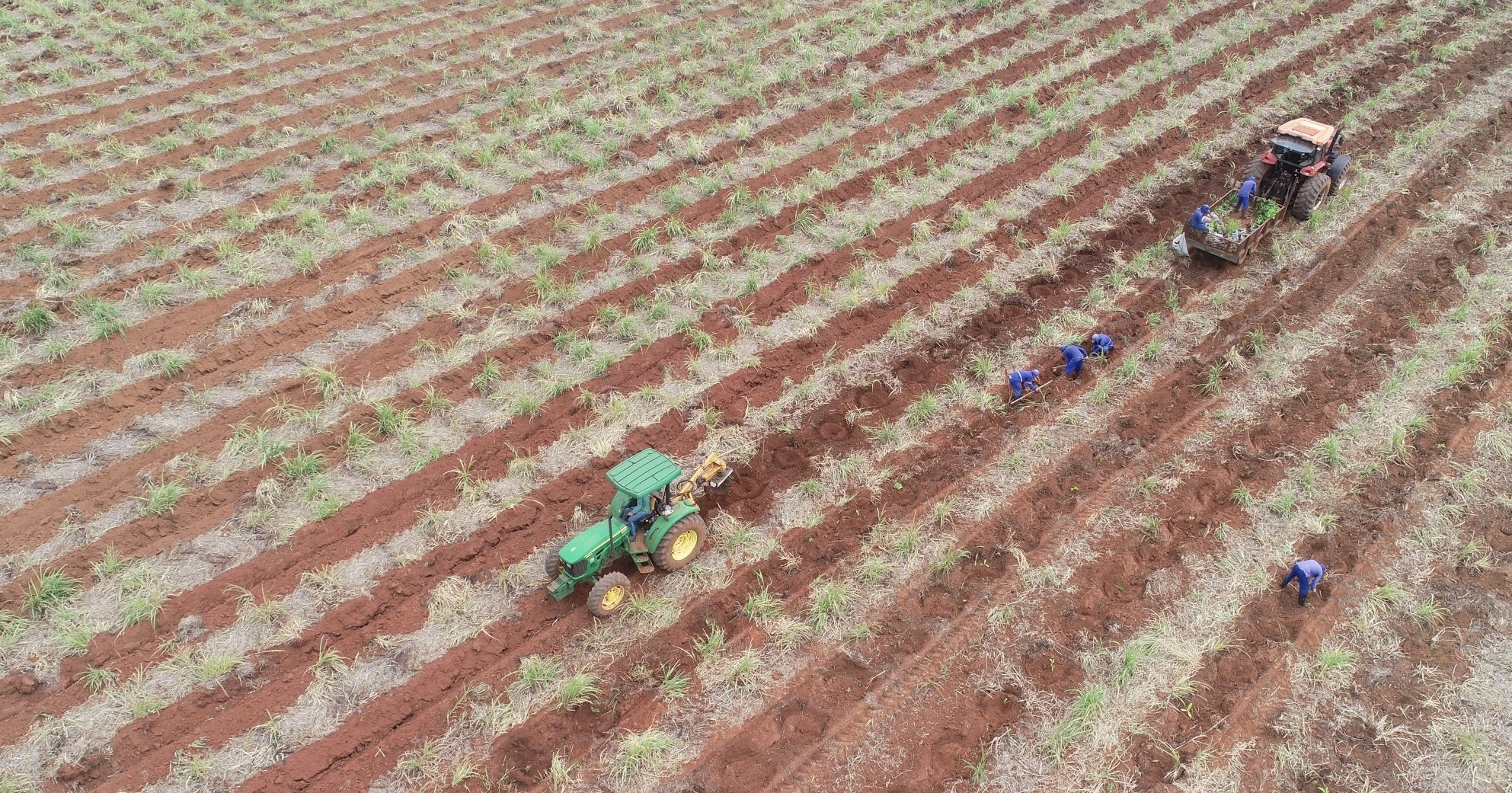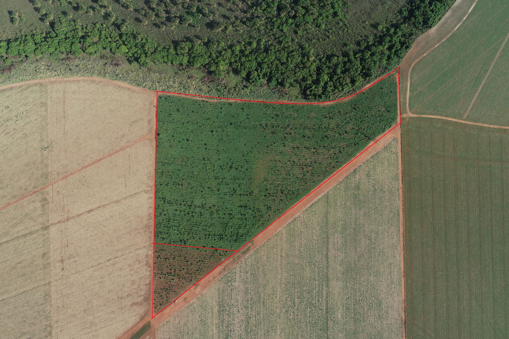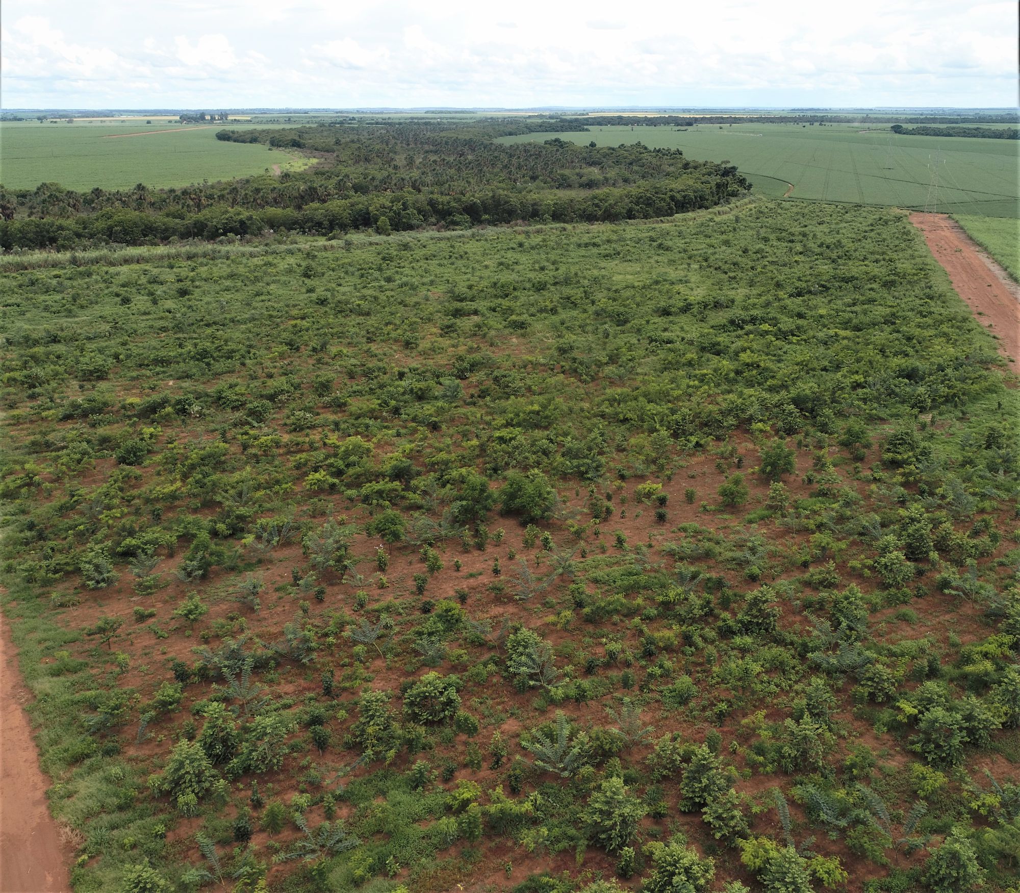 Em 2019 a área era utilizada para o plantio de cana de açúcar, a cana foi dessecada para dar lugar as árvores para reconstituição da reserva.